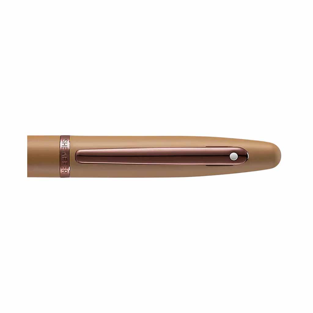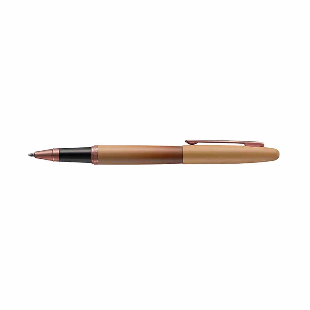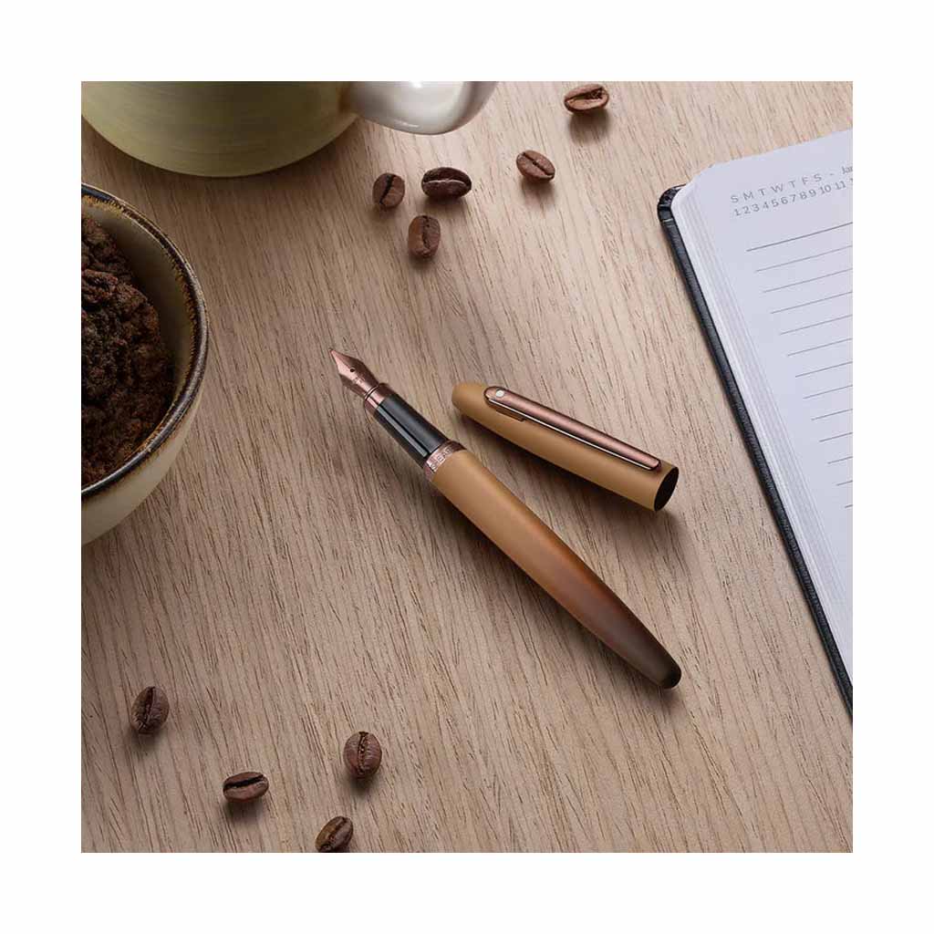 Rolleball Sheaffer E1942851 Ed Coffe destaca por pertenecer a la edición especial Coffee, una propuesta cromática que se aleja de lo convencional para ofrecer una paleta de tonos terrosos sumamente sofisticada. El cuerpo en color café mate, combinado con los herrajes en bronce, evoca una estética natural y moderna, ideal para profesionales que buscan un instrumento de escritura con carácter y calidez.